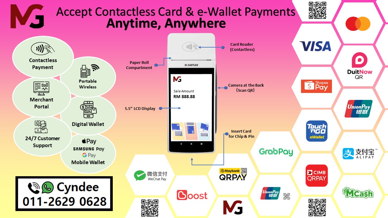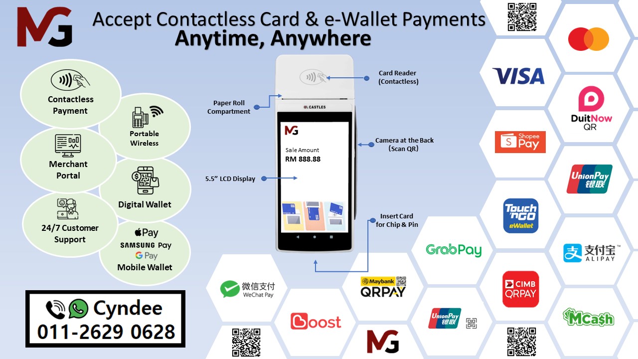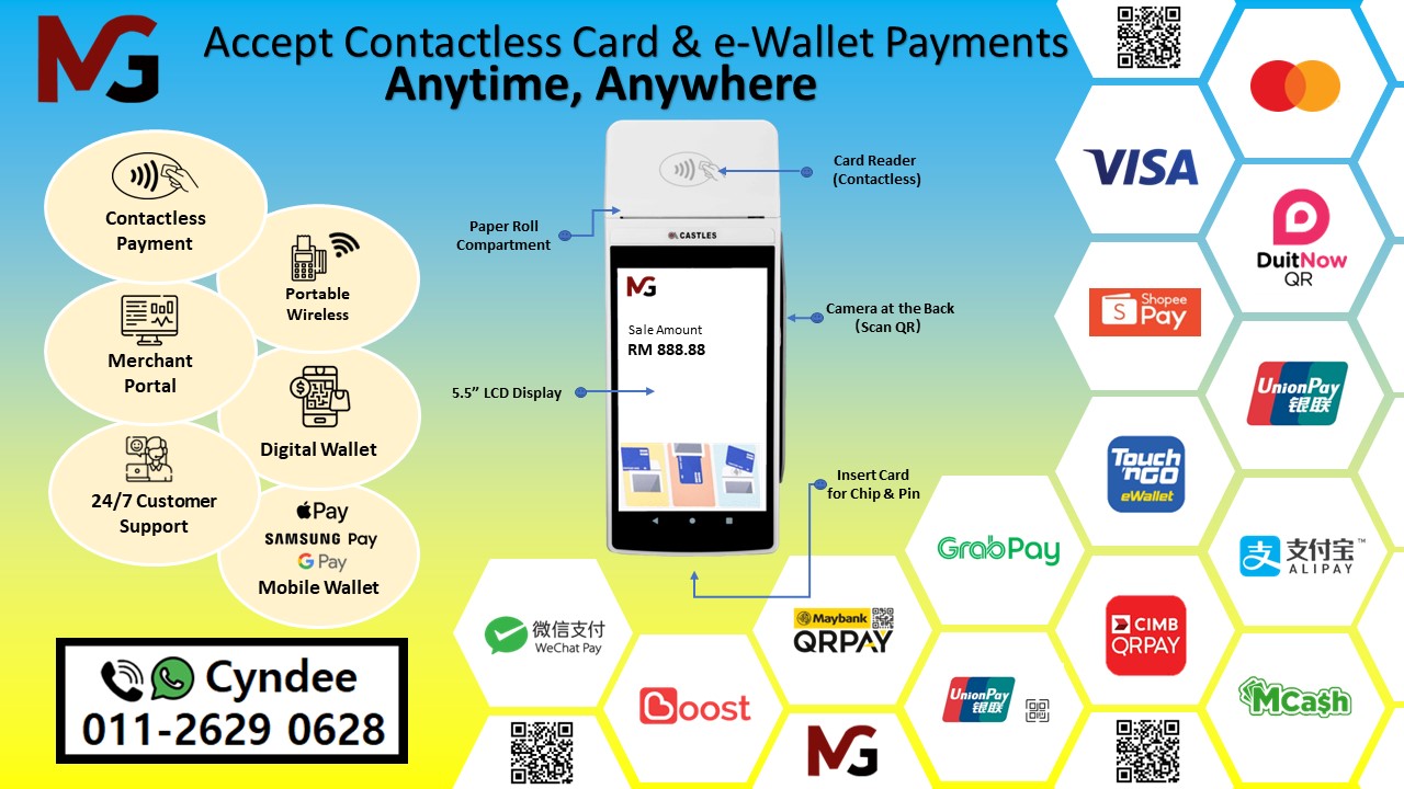 Upgrade to the Future of Payments: All-In-One Wireless Visa/Mastercard, DuitNow & e-Wallets Terminal.