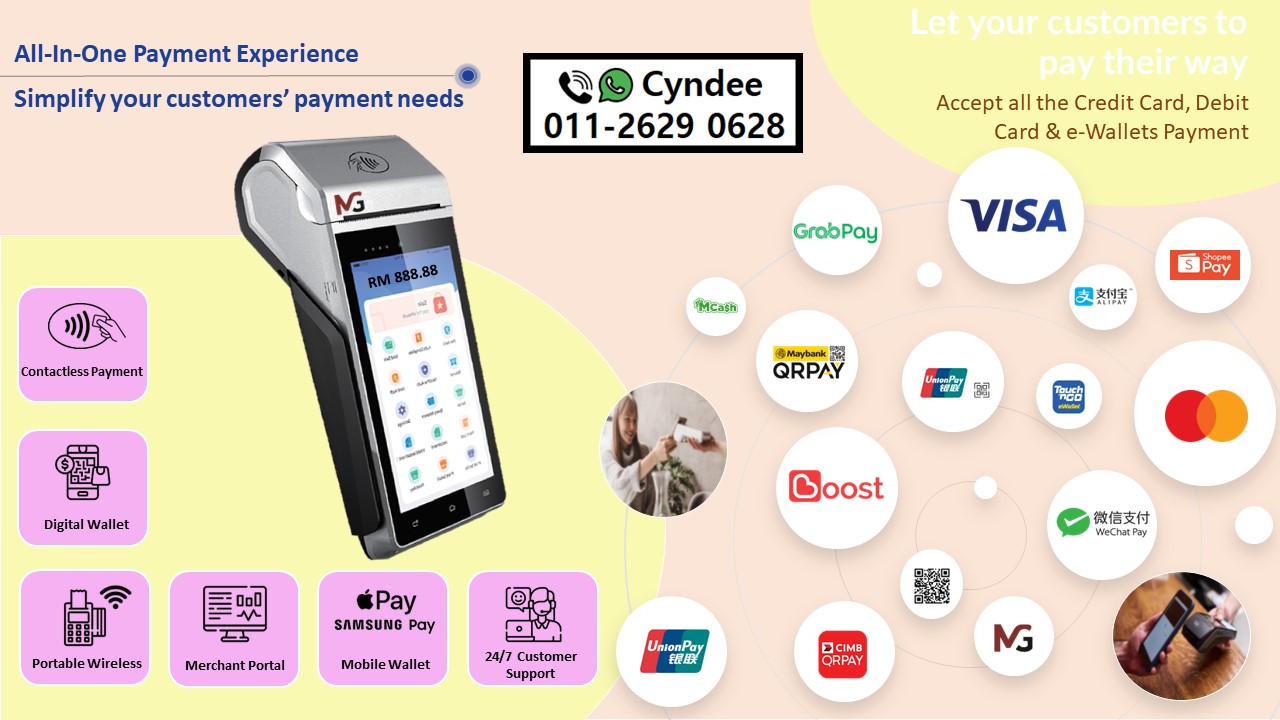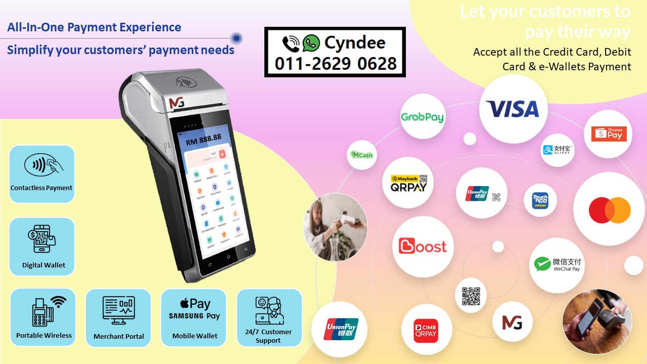 Grow Your Business with the All-In-One Wireless Visa/Mastercard, DuitNow & e-Wallets Payment Terminal.