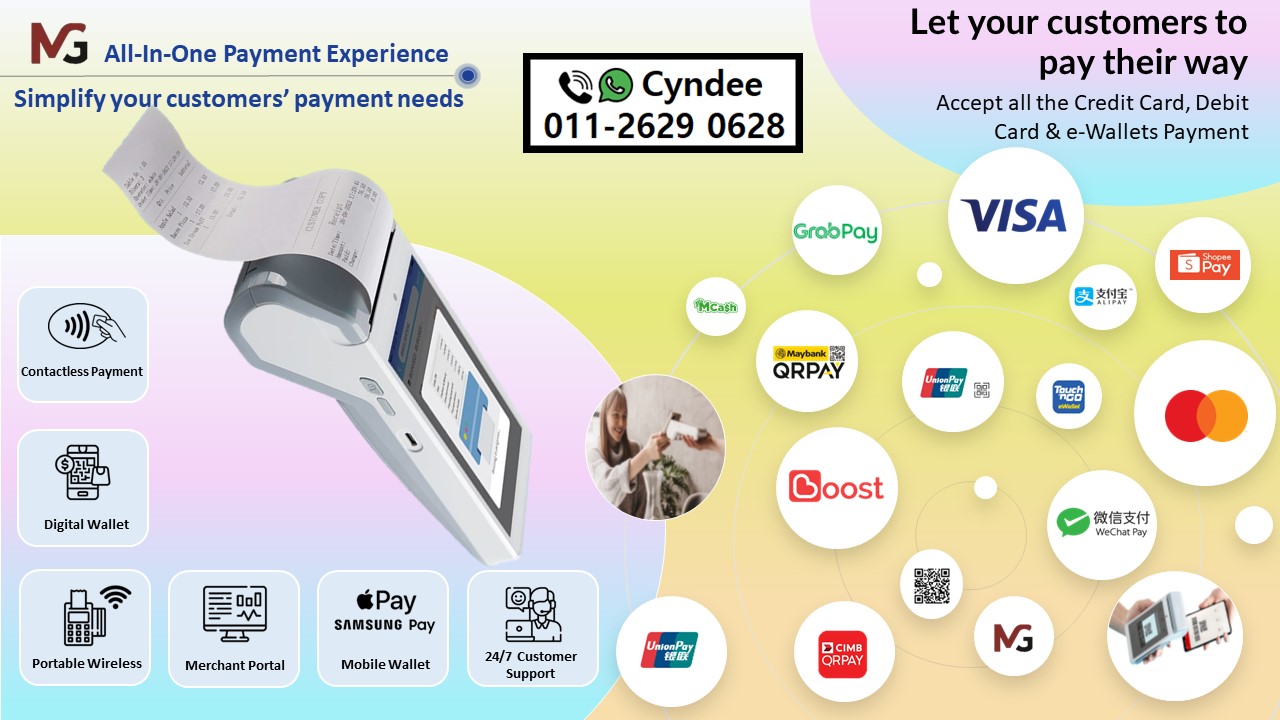 Give Your Customers Freedom to Pay - All-In-One Wireless Visa/Mastercard, DuitNow & e-Wallets Terminal Payment Gateway Terminal.
